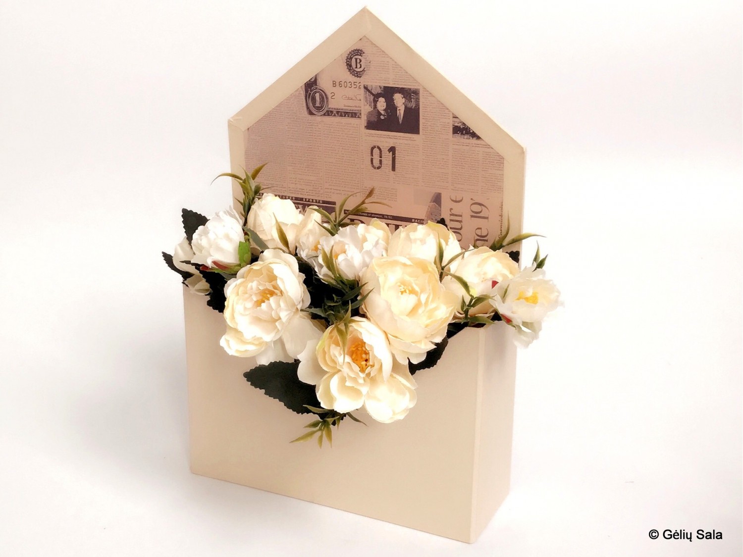Gėlių Dėžutė vokelis kreminis